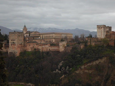 The Alhambra in Granada is a palace that used to be a Muslim fortress during the Muslim rule in Spain from 711-1492. This former fortress symbolizes the major influence of Arabic-Muslim architecture in Spain. Granada was the last stronghold of Muslim rule during the christian reconquista. The Christians believed that the Alhambra was to beautiful to destroy when they conquered the city, therefore it still stands today. I have never seen anything like the Alhambra before and was memorized by the magnitude of it. The Sierra Nevada mountains set off in the background were breathtaking. In order to have the perfect view of the Alhambra you have to visit the look out point "St.Nicholas" about 10 minutes outside of the city center. We visited the look out point on the first day in Granada then went inside the palace the next day. Everything about the Alhambra was perfect, except for the horrible weather....freezing rain and ice cold temperatures was definitely something I could have done without during this trip but I still had an amazing time at the Alhambra and Granada.